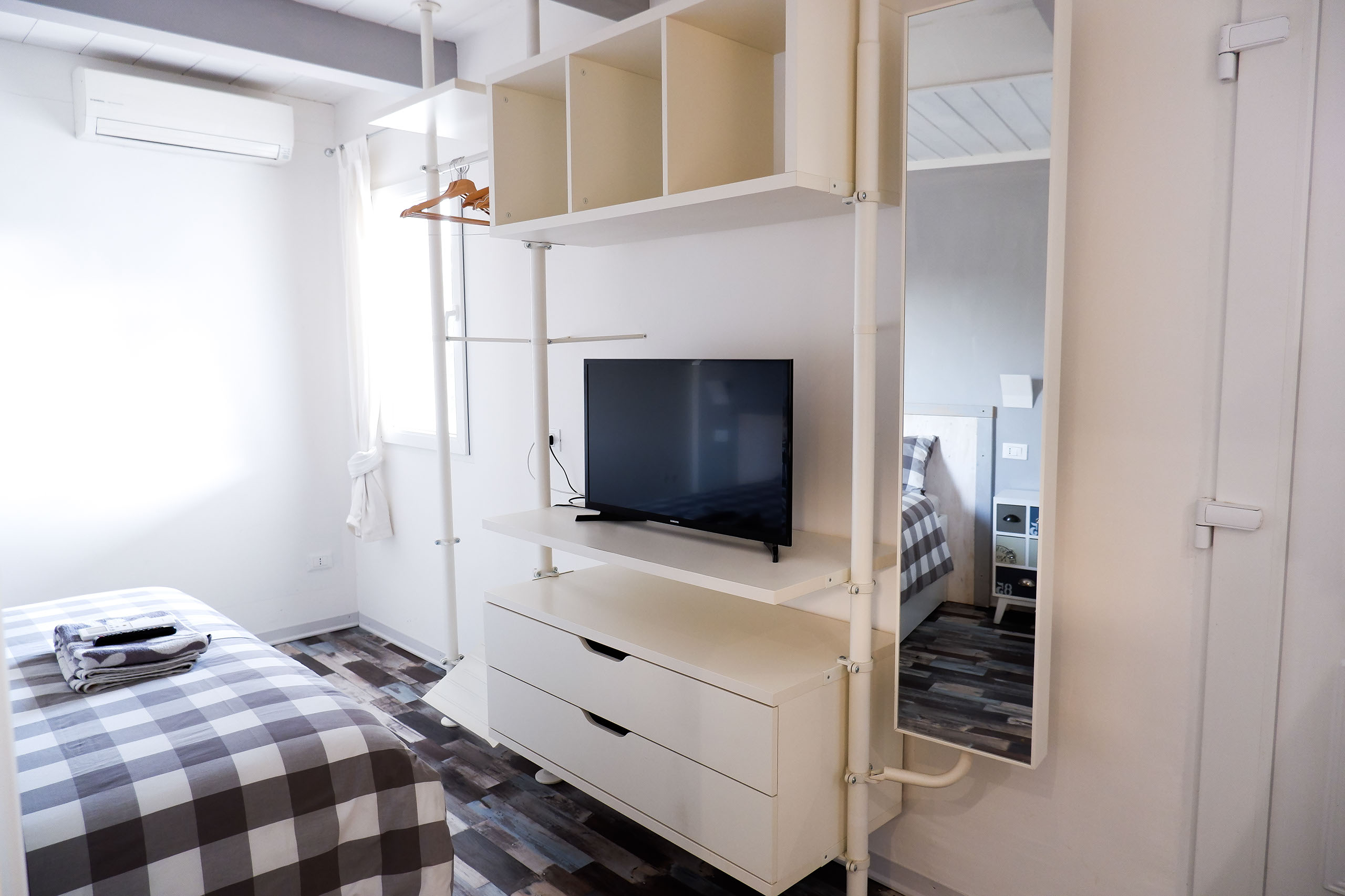 Ampia area living, comodi pensili per oggetti personali, wifi, tv e bagno interno.